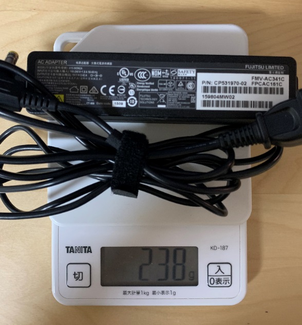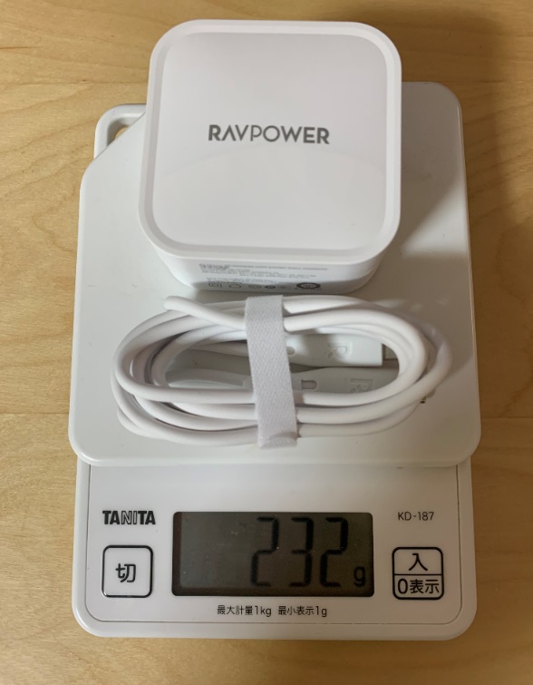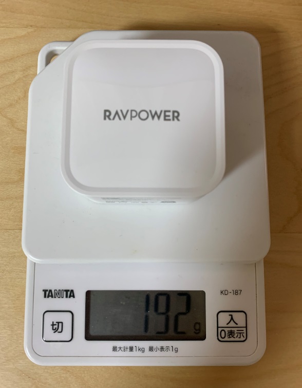 購入して実際の重量を測ったところ192gでした。ケーブル込みだと232gです。